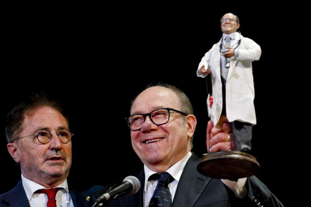 "Non dite che sono medico, però: è stata una cosa affettuosa", ricorda Verdone, che riceve anche in dono un pastore della bottega di Ferrigno, con le sue sembianze, un po' stempiato come lui e un camice bianco.