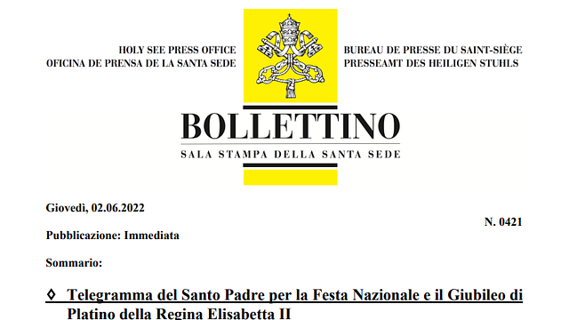 Papa Francesco ha inviato un telegramma alla Regina Elisabetta per il Giubileo di Platino. Il Pontefice invia i suoi "cordiali saluti e auguri" e assicura le sue preghiere - si legge nel messaggio - affinché "Dio Onnipotente conceda a lei, ai membri della famiglia reale e a tutto il popolo della vostra nazione benedizioni di unità, prosperità e pace".