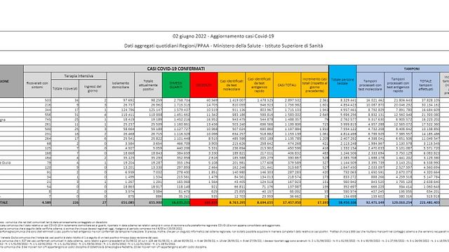Come emerge dal bollettino del ministero della Salute, continua il calo degli attuali positivi in Italia (-13.009 in 24 ore) e un totale di 655.900 persone alle prese oggi con il virus. Di queste 651.085 sono in isolamento domiciliare. Sul fronte ricoveri, sono 226 i pazienti in terapia intensiva: gli ingressi giornalieri sono 27. I ricoverati nei reparti ordinari sono 4.589.