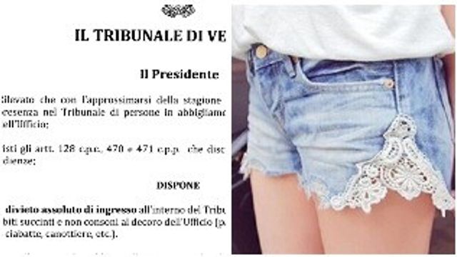 Stop ad "abiti succinti e non consoni al decoro dell'Ufficio". "Rilevato che con l'approssimarsi della stagione estiva è stata riscontrata la presenza di persone in abbigliamento non adeguato", il presidente del tribunale di Velletri (Roma) ha disposto il divieto assoluto di ingresso a chiunque si presenti con indosso "pantaloni corti, shorts, infradito o ciabatte, canottiere, ecc".