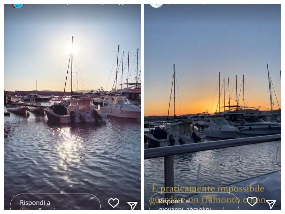 Michelle Hunziker si trova in Sardegna e con lo sguardo sul mare scrive: “Solo cose belle”. Angiolini a Cagliari ci vive e dopo aver postato immagini e video dalla barca, mentre cucina una tartare e si prepara a un brindisi, mostra la cena sul mare e scrive: “E’ praticamente impossibile guardare un tramonto e non sognare”. Lo stesso scorcio di barche al calar del sole appare sul profilo della conduttrice tv. Più chiaro di così…