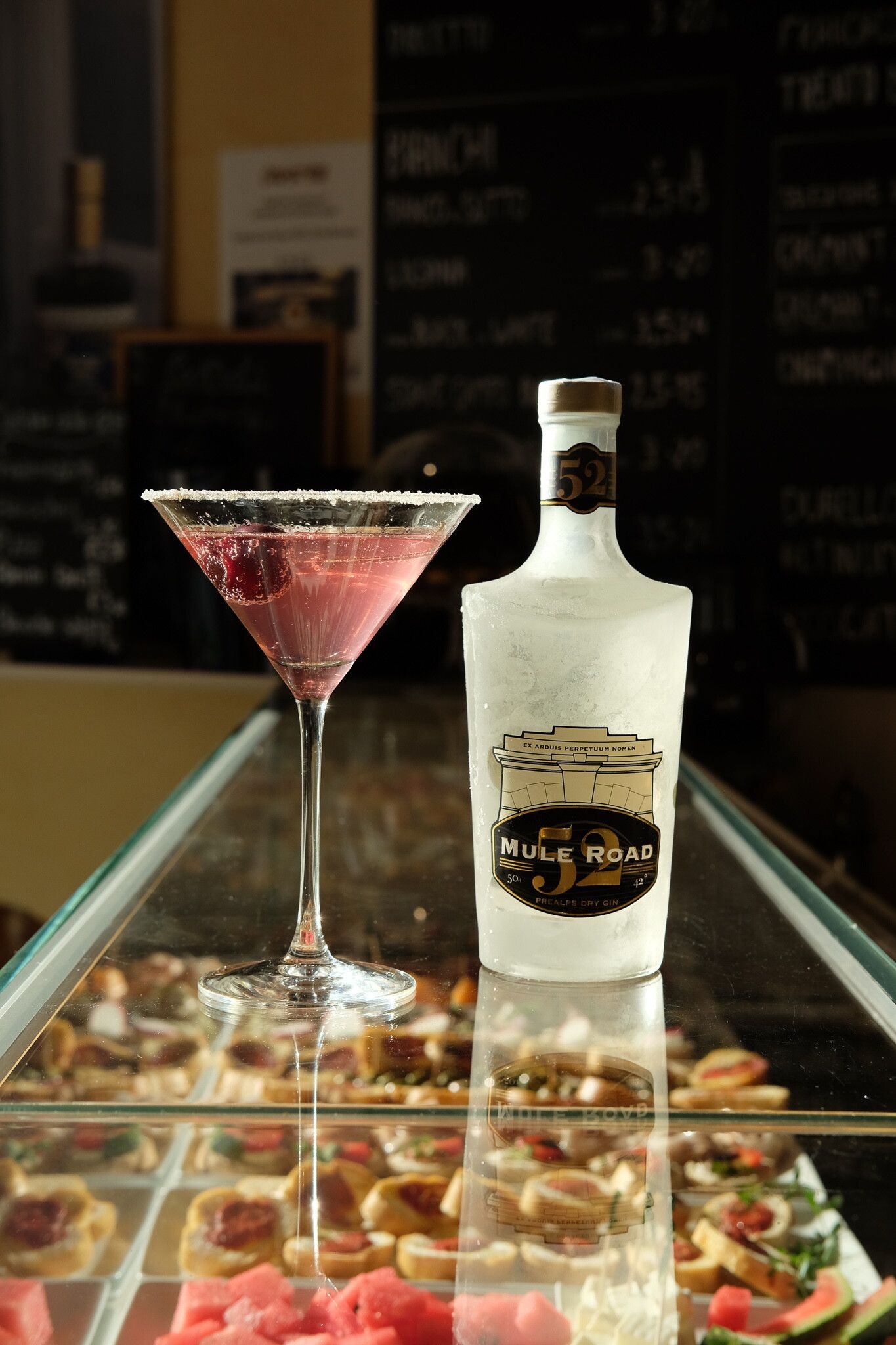 Per presentare il Gin e la sua versatilità abbiamo deciso di coinvolgere alcune tra le eccellenze cittadine. Il giorno 11 giugno ognuno ha proposto il distillato in modo unico e innovativo, rispettando il proprio DNA: la Tramezzineria Dante ad esempio con un classico gin tonic con un gustoso tramezzino alla maresina ideato per la serata, mentre l’Enoteca Salumeria Amarcord con il bartender Federico Marcato ha proposto 2 cocktail Signature, il bar Corso Italia 47 con un aperitivo e bocconcini creati per l’occasione. Il gin ha preso vita anche attraverso una proposta salata di Rochefort e filetto di salmone coda nera con burro morbido al gin presso la gastronomia Lallo e Lolli. Per i palati amanti del dolce il Gelataio di Valdagno ha creato una crema al 52 Mule Road variegata al passion fruit con crumble di cioccolato fondente e la pasticceria Dall’Alba un Cherry Mule, un cremoso al gin, cioccolato e ciliegie. Non poteva però mancare un’interpretazione anche per il più classico espresso che, grazie a La Caffetteria Veneta, si propone con un’aria al 52 Mule Road. Una nuova dimostrazione di quanto qui si sappia fare squadra per raccontare le proprie eccellenze, sfruttando l’enogastronomia come traino per il turismo. Queste zone sono piene di eccellenze alimentari, e il nostro obbiettivo è proprio quello di entrare a far parte di questa tradizione. Ci teniamo anzi a ringraziare la Confcommercio di Valdagno per il supporto fornitoci e tutte le attività commerciali del centro che hanno accolto positivamente e con entusiasmo la nostra proposta.