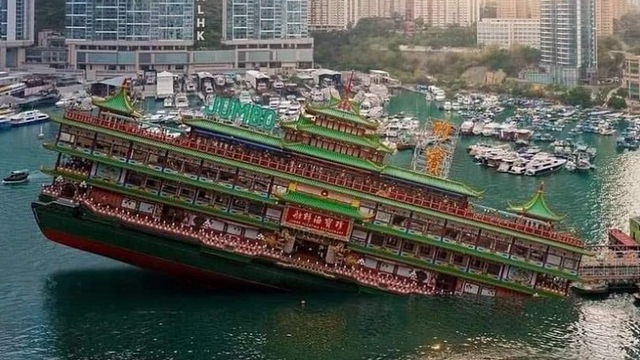Il colosso al neon- Con 80 metri di lunghezza e una capacità di oltre duemila persone (comprese anche un'imbarcazione gemella più vecchia, una chiatta per le cisterne di frutti di mare, un'imbarcazione separata per le cucine e otto traghetti per trasportare i visitatori dai moli vicini) la nave è "unica al mondo", come l'ha definita durante un'intervista Charles Lai, architetto e fondatore di Hong Kong Architectural History. Il gruppo di ristoranti, però, è diventato meno popolare dal 2013 quando ha registrato un deficit a causa della diminuzione della popolazione di pescatori nel porto meridionale dell'isola. La pandemia poi ha dato il colpo di grazia: nel marzo 2020 i proprietari hanno annunciato perdite per oltre 13 milioni di dollari.
