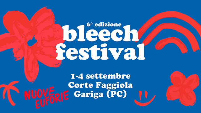 Dopo tre anni di pausa dovuta all’emergenza sanitaria, torna Bleech Festival, la rassegna dedicata alla musica e alle arti giovanili presso la Corte Faggiola di Podenzano (PC), la nuova suggestiva e magica location che dall’1 al 4 settembre 2022 farà da cornice a quattro giorni di musica, degustazioni di vino, street food, mercatini, laboratori e molto altro a ingresso gratuito. Quest’anno il concept del festival è “Nuove euforie", cioè ritrovare la felicità nell’aggregazione. Tra i protagonisti Dargen D’Amico, bnkr44, Memento, Gazebo Penguins.