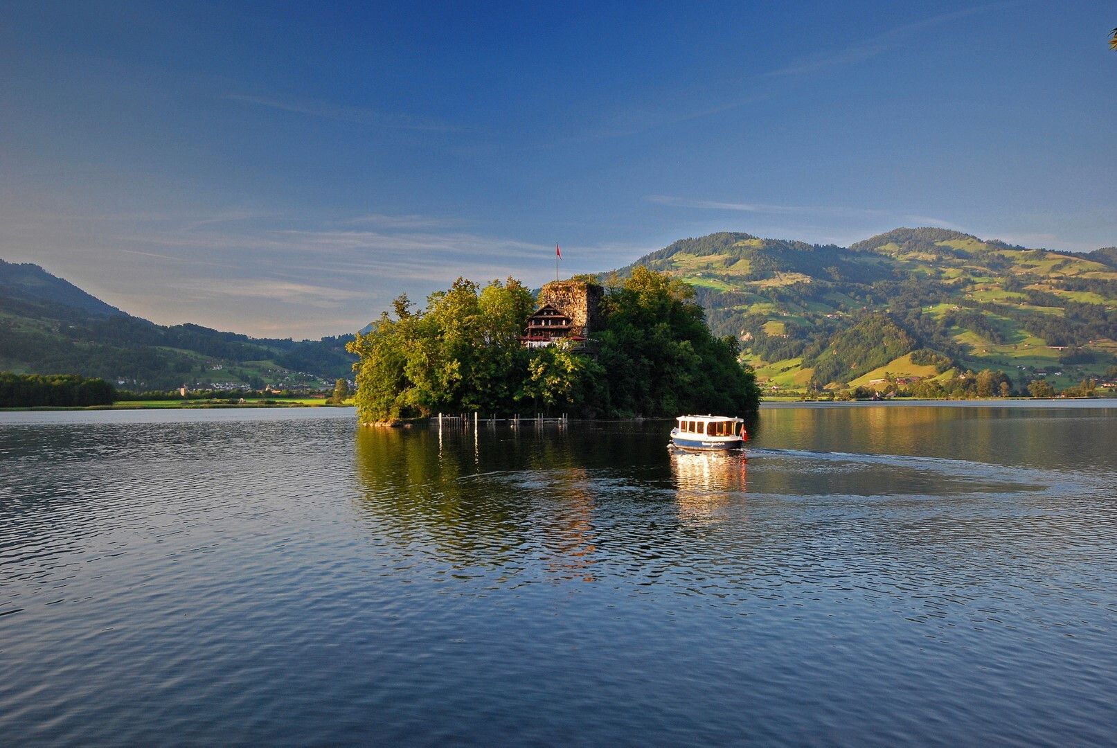 Isola di Schwanau, lago di Lucerna - Si salpa verso l’oasi di verde: l’isola di Schwanau, incastonata nel Lago di Lauerz tra i due Mythen e il Rigi, vanta le rovine di un castello, la Cappella di San Giovanni e il delizioso ristorante di Schwanau che propone pietanze leggere, creative e regionali. Come arrivare: all’isoletta si arriva in traghetto, con una traversata di cinque minuti. A mezzogiorno e di sera vi sono corse gratuite in battello per l’isola e ritorno.