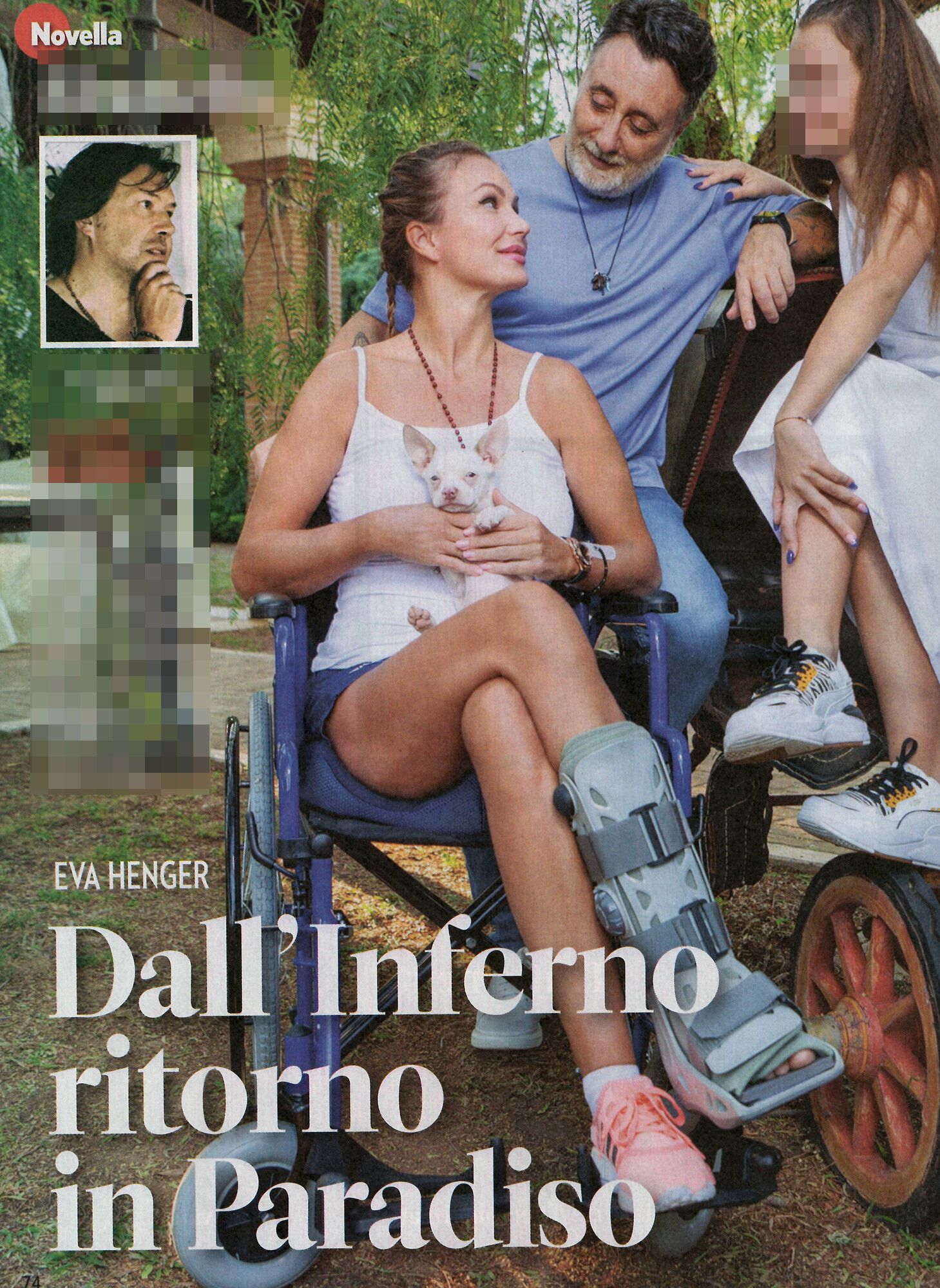 E' costretta a muoversi su una sedia a rotelle, ma ogni tanto Eva Henger riesce ad alzarsi. A due mesi dall'incidente in Ungheria con il marito, l'attrice 49enne racconta la convalescenza al settimanale "Novella 2000". "Ancora piango spesso per tutto quello che è successo. Mi viene in mente l’incidente, le due persone che non ci sono più. Mi dispiace tantissimo", confessa.
