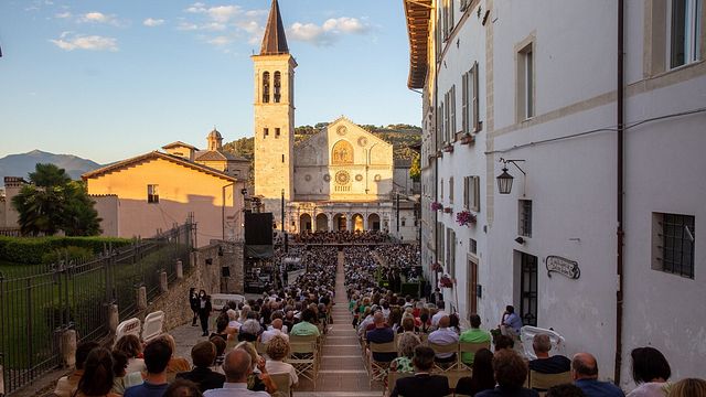 Ovazione del pubblico a conclusione del Concerto in piazza, per la 65esima edizione del Festival dei due Mondi di Spoleto. L'orchestra dell'Accademia Nazionale di Santa Cecilia, diretta da Sir Antonio Pappano, ha eseguito: "Knoxville:Summer Of 1915" di Samuel Barber e la sinfonia numero 3 di Aaron Copland. Soprano nella composizione di Barber è stata Barbara Hanningan, grande protagonista di questa 65esima edizione. Antonio Pappano ha definito la cantante e direttrice d'orchestra la "star" del Festival, dicendosi onorato di collaborare con lei in un lavoro di grande virtuosismo vocale, come quello di Samuel Barber.
