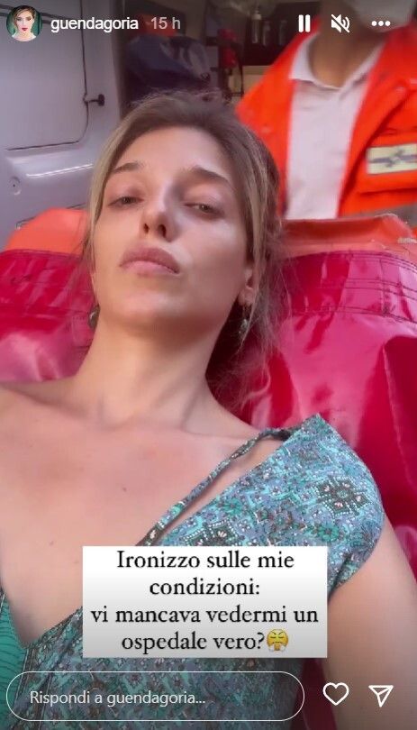 "Ironizzo sulle mie condizioni", scrive nella didascalia di una foto che la ritrae sulla lettiga: "Vi mancava vedermi in ospedale, vero?". Poi le lacrime e la notizia: "Vorrei tranquillizzare tutti voi ma non è proprio così. Ho fatto una visita ginecologica e ho avuto una gravidanza extrauterina che si è attaccata alle tube, quindi non è nel posto giusto", ha spiegato piangendo Guenda informando che dovrà essere operata d'urgenza.