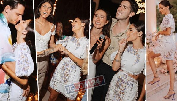 L'atmosfera era fatata, con tanti fiori, comodi divani, ombrelloni... tutto dai delicati colori pastello. Giulia De Lellis ha documentato ogni dettaglio dell'allestimento, e non ha trascurato nemmeno il cibo, regalando scorci gustosi sui piatti serviti: dalla pasta ai tacos. Lei era bellissima con un completo dalla fantasia floreale abbinato all'allestimento e Carlo era pazzo di lei.