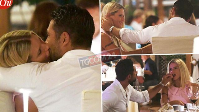 Lei indossa un abitino bon-ton rosa e sorride innamorata al suo accompagnatore. Lui non le fa mancare attenzioni e carezze in un crescendo di passione. Nei flash finiscono anche i baci intensi e ripetuti. Il chirurgo estetico sardo la imbocca con sensualità, Michelle Hunziker sta al gioco della seduzione, poi si avviano fuori dal locale abbracciati.