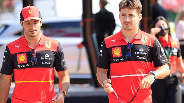 Nella foto in alto, i piloti della Ferrari Carlos Sainz e Charles Leclerc