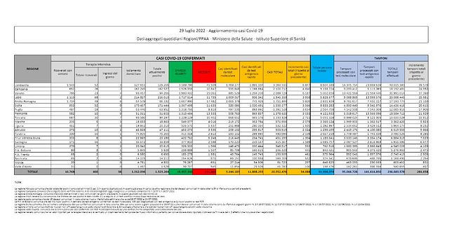 I numeri della pandemia - Sono 1.323.264 le persone attualmente positive al Covid nel nostro Paese. Gli italiani contagiati dall'inizio della pandemia sono 20.952.476 mentre i decessi totali salgono a 171.882. Nel complesso sono 139.499.043 le dosi di vaccino somministrate e 236.683.578 i tamponi effettuati.