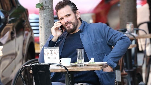 Nella foto, l’attore Matt Dillon parla al telefono mentre è da solo a colazione a New York