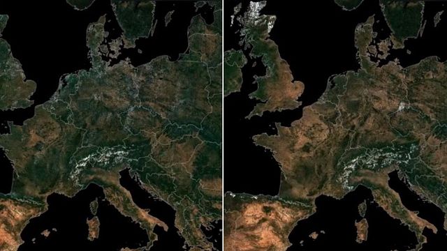 La siccità in Europa nell'estate del 2022 è stata la peggiore degli ultimi 500 anni. Lo indicano i dati del Programma europeo di osservazione della Terra Copernicus, gestito dalla Commissione Ue e dall'Agenzia spaziale europea. Le immagini registrate dal satellite Sentinel 2 indicano che, tra il primo luglio e il 31 agosto, vaste regioni sono passate da un verde acceso a un marrone arido. I danni più gravi sono ben visibili nel sud-est della Gran Bretagna, in Francia settentrionale e in Germania, Polonia ed Europa orientale.