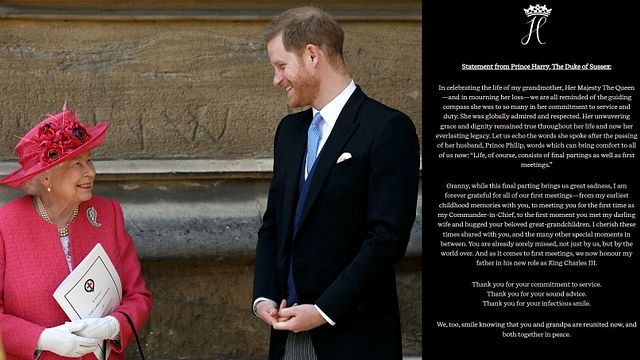 Il principe Harry rende omaggio alla "grazia e dignità incrollabili" di sua nonna, la regina Elisabetta, ricordandola in un messaggio per i suoi "consigli preziosi" e per il "sorriso contagioso". Ma anche per "il suo impegno" e per essere sempre "rimasta vera". Il nipote "ribelle" si dice inoltre "per sempre grato" per quanto fatto dalla sovrana nel corso della sua vita.