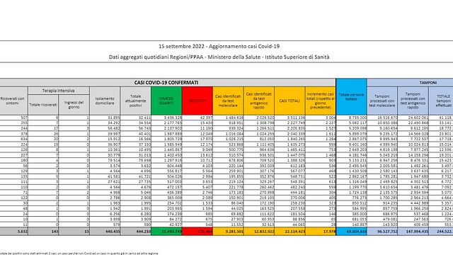 Nelle ultime 24 ore in Italia si registrano 17.978 casi di coronavirus, a fronte di 146.983 tamponi processati. Lo comunica il ministero della Salute, sottolineando che ci sono altri 60 morti. Il tasso di positività si attesta al 12,2% (+1,2%). Diminuiscono le ospedalizzazioni: - 8 terapie intensive, - 87 ricoveri nei reparti ordinari. I guariti e dimessi odierni sono 24.603.