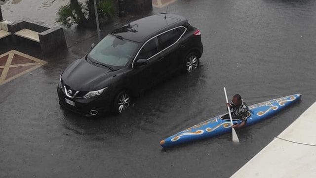 Una scena che non capita di vedere tutti i giorni. L'isola d'Ischia questa mattina si è svegliata con tratti di strade allagate per via del maltempo iniziato già nella notte. Così, nel giorno delle elezioni, c'è chi non rinuncia al voto e attraversa le strade del corso di Lacco Ameno, in canoa.