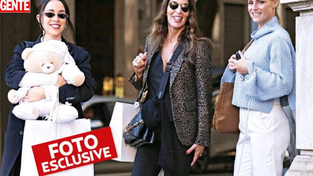 Aurora Ramazzotti sceglie un soleggiato pomeriggio milanese per lo shopping premaman. Al suo fianco Michelle Hunziker e Francesca Romana Malato, due nonne sprint e trendy che catturano i flash del settimanale “Gente” che immortala il trio a spasso per negozi. Aurora Ramazzotti indossa un cappottino scuro ma sotto si intravedono le prime forme arrotondate della gravidanza. Michelle Hunziker veste un paio di pantaloni bianchi abbinati a un maglioncino over celeste, per stare in tema con la giornata dedicata al nipotino. Al guinzaglio c’è l’inseparabile Odino, il levriero di Tomaso Trussardi che la conduttrice tv si divide con l’ex marito (con cui però pare sia ricominciato il riavvicinamento: lui è stato pizzicato dai paparazzi dopo una notte a casa di lei). Francesca Romana Malato è in nero e maculato, sorridente e felice come non mai. Tra le braccia di Aurora Ramazzotti all’uscita dal negozio per la prima infanzia spunta un bell’orsacchiotto, il primo peluche per baby Cerza, mentre le nonne tengono i sacchetti con il corredino.