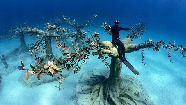 Nella riserva naturale di Ayia Napa, piccolo paesino sulla costa sud-est di Cipro, l’artista Jason deCaires Taylor ha installato sul fondale marino 93 sculture, alcune di adulti e bambini e altre di alberi e piante, creando così la prima “foresta” sottomarina al mondo. Il MUSAN – Museum of Underwater Sculpture Ayia Napa è composto da particolari opere d’arte posizionate a 200 metri dalla costa a varie profondità (tra gli otto e i 10 metri), realizzate con materiali naturali già presenti in mare come pietre, rocce e conchiglie e che presentano un pH neutro. La foresta scultorea, infatti, è stata progettata sia per creare un habitat naturale capace attirare le specie marine e stimolarne crescita, sia per essere ammirata dai sub e dagli amanti dello snorkeling.