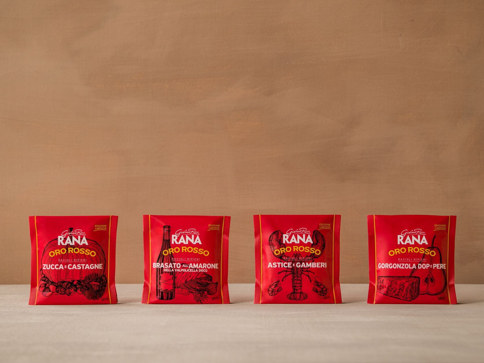 Dopo il grande successo delle precedenti limited edition, Rana ha voluto sorprendere ancora una volta tutti i pasta lovers, portando in tavola quattro ricette, avvolte in una sfoglia sottile di pasta fresca, che insieme rinnovano l'eccellenza e la prelibatezza della già amatissima linea "Oro Rosso", disponibile anche quest'anno per un periodo di tempo limitato (fino al prossimo febbraio 2023).