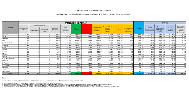 I numeri della pandemia: d'ora in avanti una volta a settimana - Sono 475.906 le persone attualmente positive al coronavirus nel nostro Paese. Gli italiani contagiati dall'inizio della pandemia sono 23.504.224, mentre i decessi totali salgono a 179.025. Nel complesso sono 141.759.979 le dosi di vaccino somministrate. D'ora in avanti, come anticipato dal ministero della Salute Schillaci, il bollettino Covid da quotidiano passa a cadenza settimanale, ogni venerdì.
