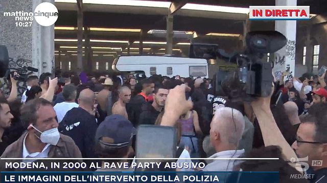 Polizia: "Edificio pericolante, va sequestrato" - Il rave party in un capannone abbandonato nella zona di Modena aveva preso il via sabato sera. Le operazioni di sgombero sono iniziate in maniera morbida: le forze dell'ordine hanno imbastito una trattativa con i partecipanti al rave. "Non entriamo, siamo qui perché l'edificio è pericolante e va posto sotto sequestro. Non siamo qui per voi, ma per la struttura che è pericolosa. Non entriamo. Non ci interessa cosa fate, noi siamo a presidio della struttura", ha detto un funzionario di polizia rivolgendosi ai partecipanti.
