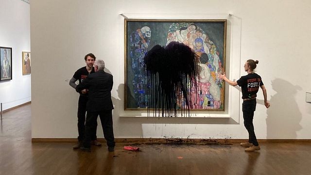 A Vienna gli ambientalisti di Last Generation hanno compiuto l'ennesimo attacco a un'opera d'arte. Due attivisti hanno lanciato del liquido nero e oleoso sul quadro "Morte e vita" di Gustav Klimt, esposto nel Museo Leopold. Il gesto è stato fatto in segno di protesta verso le nuove trivellazioni di petrolio e gas, che "sono una condanna a morte per l'umanità".