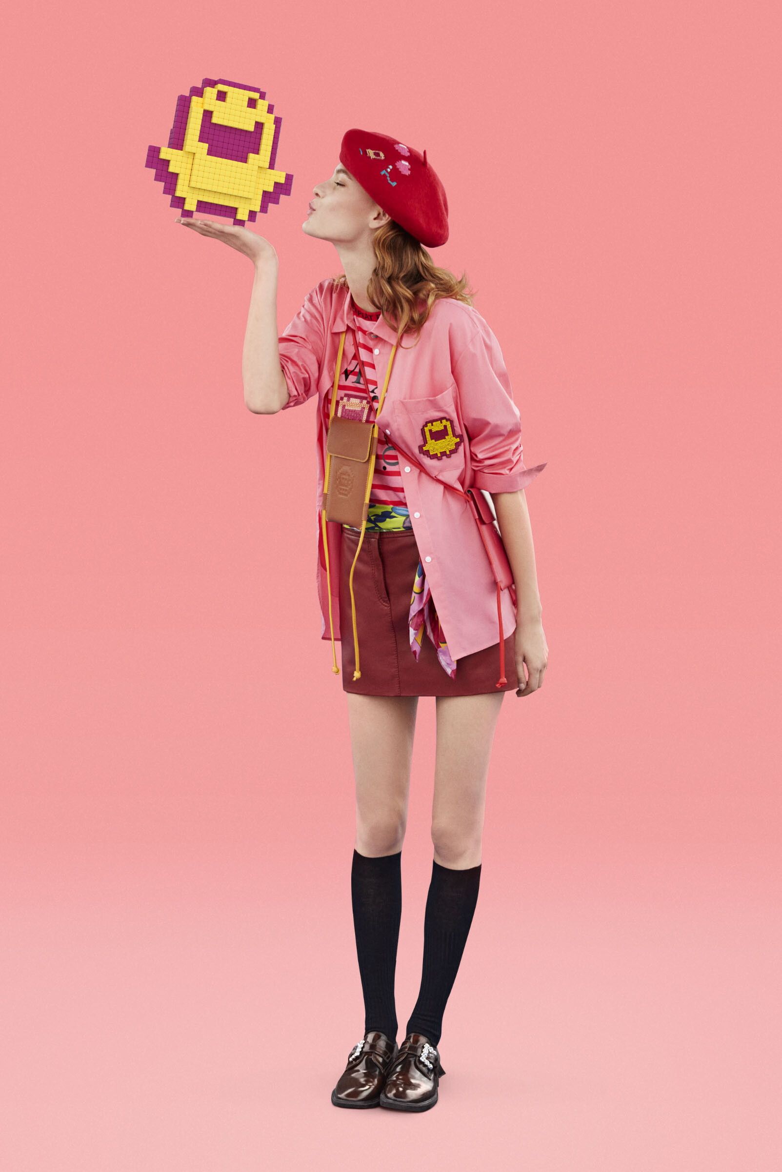 La capsule “Tamagotchi in Paris”, nata dalla collaborazione tra Max&Co. e Bandai Namco Europe S.A.S., unisce la nostalgia degli anni Novanta al tipico stile francese. Figure giocose e grafiche pixelate si ritrovano, così, sui “must have” del guardaroba parigino, come la maglia Breton e il basco. Ad animare l’intera collezione, anche motivi ed elementi ricamati e impreziositi da perline, tra cui cuoricini e lo stesso Tamagotchi. Tema ricorrente sono le righe: in bianco e nero o in rosa papavero e rosso, sono su t-shirt e felpe con cappuccio. Le semplici istruzioni per prendersi cura di un Tamagotchi, "Eat sleep repeat", sono stampate sul retro delle magliette, sul davanti di morbidi maglioni o sui colletti jacquard.