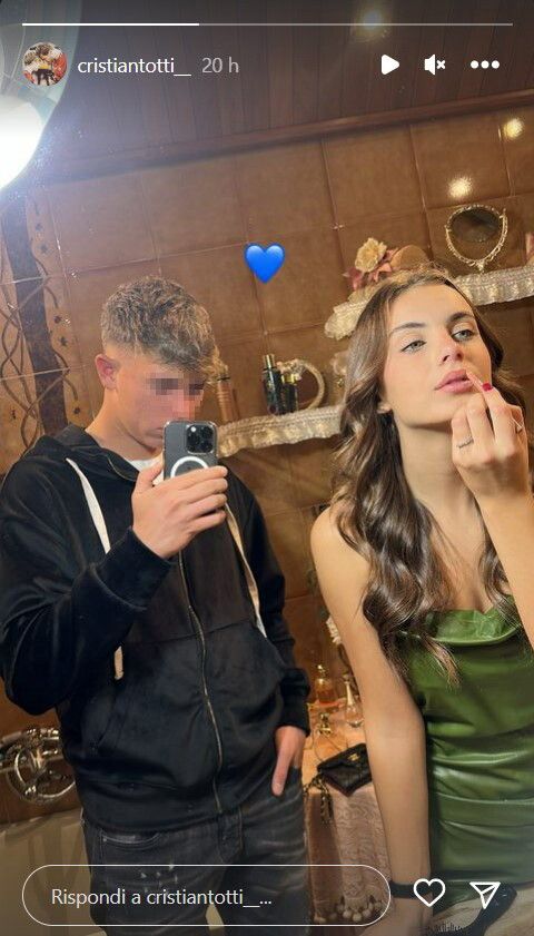 Cristian Totti innamorato. Il figlio di Ilary Blasi e Francesco Totti si mostra sui social insieme a Melissa Monti, la sua fidanzata. Un selfie allo specchio scattato dal figlio d'arte (è calciatore come il papà), con la ragazza che si trucca. Un cuore azzurro il commento per uno scatto dolce e tenero.