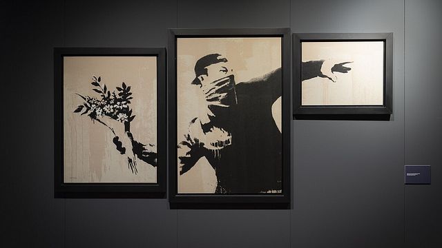 La mostra di Trieste su Banksy: il percorso espositivo - L'esposizione si apre con una prima sala contenente opere di artisti e di movimenti a cui l'autore si è ispirato, tra cui Keith Haring, Andy Wharol e Blek le Rat, oltre ai poster del maggio francese dai quali Banksy ha ripreso il minimalismo, la comunicazione delle rivolte e l'uso dello stencil, ma anche le opere legate ai situazionisti e al concetto di comunicazione di massa. Infine, i graffiti della New York anni Ottanta, fondamentali per i murales.