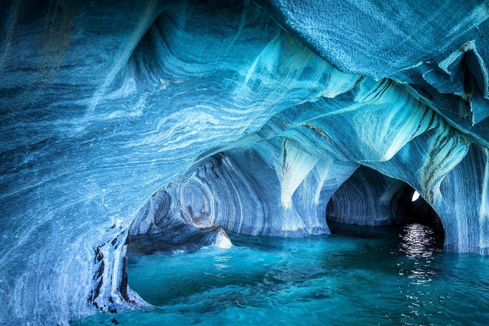 Catedral de Mármol, Lago Carrera, Patagonia, Cile - Una formazione minerale di carbonato di calcio che si trova lungo la costa del Lago Buenos Aires/General Carrera, in Cile. Le volte bianche di marmo riflettono il turchese del mare, creando un effetto a contrasto davvero paradisiaco.