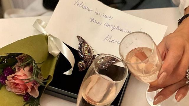 Questo però è arrivato poco dopo, come testimoniato da un post Instagram della showgirl. Marco le ha portato in dono la statuetta di una farfalla, un regalo simbolico dal momento che il biglietto di accompagnamento recitava "Voliamo insieme...". E poi un brindisi per festeggiare. Come sarà finita?