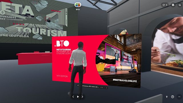 Altra novità è la META-BTO realizzata da Carraro LAB, una sperimentazione inedita della sinergia phygital tra eventi fisici e virtuali: mentre sul palco si tiene l’intervento inaugurale, nel grande schermo compare il duplicato virtuale della Leopolda, con avatar e ambienti 3D che interagiscono con i relatori e partecipanti reali. Una parte della mostra virtuale è dedicata alle linee guida della Commissione Europea, con le citazioni delle prese di posizione di Ursula Von Der Leyen e del Commissario Thierry Breton, volte a stimolare un approccio europeo al Metaverso, che intende essere etico, legale, sicuro, non monopolistico. Una seconda area espositiva 3D presenta i concetti chiave del Metaverso Turistico, che si pone come evoluzione immersiva per promuovere il viaggio reale. Altra opportunità offerta ai partecipanti a BTO 2022 è visitare personalmente, sotto forma di avatar, la rassegna nel Metaverso, accedendovi in modalità cross-device da Pc, Smartphone e Visori VR attraverso un Qrcode/link che verrà fornito dopo le presentazioni. La sperimentazione di META BTO è una case history emblematica delle applicazioni del Metaverso al turismo MICE.