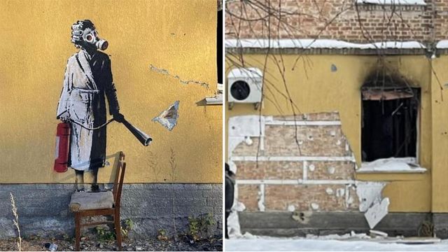 Il mese scorso, Banksy ha pubblicato sul suo profilo Instagram il video delle sue opere d'arte in Ucraina. I suoi murales mostrano persone che svolgono attività quotidiane su edifici devastati dai bombardamenti.