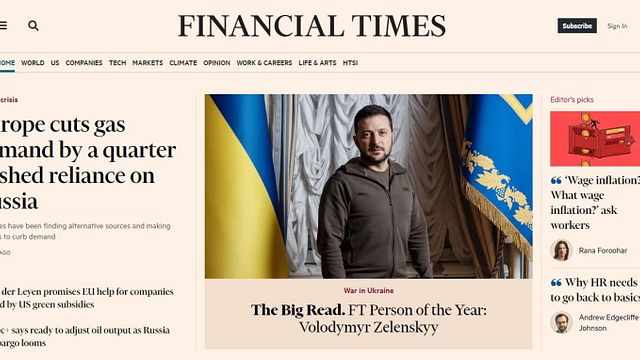 Il Financial Times ha incoronato Volodymyr Zelensky, presidente ucraino, Persona dell'anno, sottolineando che "rappresenta la resilienza del suo popolo ed è diventato un portabandiera della democrazia liberale". "Considerato da molti ucraini, prima dell'invasione di febbraio, una specie di barzelletta, un dilettante che faticava ad affrontare la sfida di un'alta carica, il 44enne Zelensky si è guadagnato un posto nella storia per la sua straordinaria dimostrazione di leadership e forza d'animo", scrive la testata definendo il leader un "Churchill dell'era social".