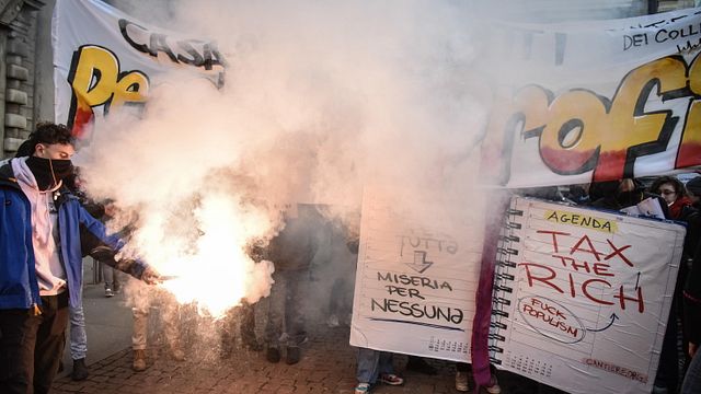 In piazza della Scala a Milano un gruppo di una trentina di persone tra studenti e appartenenti ai centri sociali ha protestato mostrando uno striscione con su scritto "People before profitto" e cartelli come "Stop War", "Stop caro bollette", "Sanità e istruzione per tutti" e "Stop alternanza scuola lavoro". I manifestanti hanno acceso fumogeni e intonato diversi cori, invitando la politica a "trovare soldi per la scuola e a ridurre quelli per la spesa militare". Esibiti anche striscioni contro il governo Meloni.