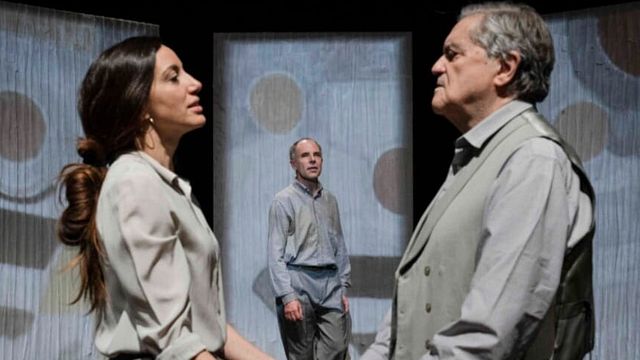 Mantenendone intatta la lingua, rispettando alla lettera i brani del romanzo, Gabrielli ha creato un tragicomico meccanismo teatrale, che scompone e ricompone l’identità del personaggio più complesso dell’intera opera pirandelliana. La figura del protagonista, Vitangelo Moscarda (l’uomo che una mattina - guardandosi allo specchio, incalzato dalla perfida moglie Dida - si accorge di avere il naso storto: una scoperta che sconvolgerà la sua intera esistenza), è stata divisa in tre personalità distinte, che interagiscono costantemente fra loro: Moscarda Uno (Gaetano Callegaro) è - diciamo - il titolare del corpo del protagonista; poi ci sono Moscarda Due (Mario Sala) e Moscarda Tre (Stella Piccioni: bravissima!) che hanno anche la funzione di far rivivere i personaggi della storia, raccontata con umorismo feroce e in senso circolare: si apre e si chiude nel parco della clinica in cui il protagonista, ormai impazzito, viene rinchiuso, e da cui (come in un flashback) rivive le tappe della sua caduta, che è però al tempo stesso una specie di rinascita.