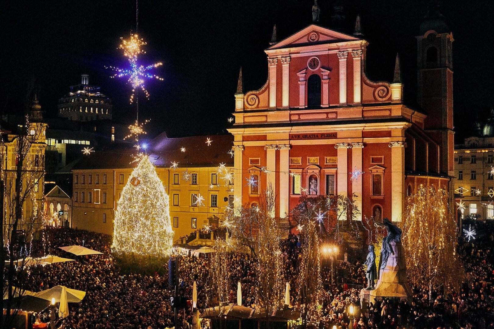 Lubiana, città senza tempoLubiana a dicembre è un viaggio nel proprio tempo, all’infanzia e al clima di attesa trepidante del Natale. L’intera capitale della Slovenia si trasforma in un teatro di luci, mentre il profumo familiare di vin brûlé, caldarroste e mandorle tostate invade entrambe le sponde della mite Ljubljanica, il fiume che l’attraversa. Tra le luminarie più spettacolari la Pioggia di Meteoriti della via Slovenska Cesta o Le Costellazioni della piazza Prešeren. Piazza Prešeren è il centro dei festeggiamenti: è qui, tra il triplo ponte sulla Ljubljanica e la facciata barocca della chiesa dell'Annunciazione della Vergine, che si svolgono i meravigliosi mercatini di Natale di Lubiana. Lì vengono serviti grappa al miele o gustosi dolci natalizi. Ci si può saziare con specialità a Km 0, frutto di antiche tradizioni. Altre piazze della città diventano un teatro a cielo aperto: spettacoli e concerti gratuiti ogni sera nella Piazza Novi e la Land of Ice sulla piazza del Congresso, dove artisti sloveni e internazionali espongono incredibili sculture di ghiaccio per tutta la stagione invernale. I mercatini natalizi saranno lungo il fiume Breg e Petkovškovo Nabrežje fino al 1° gennaio.