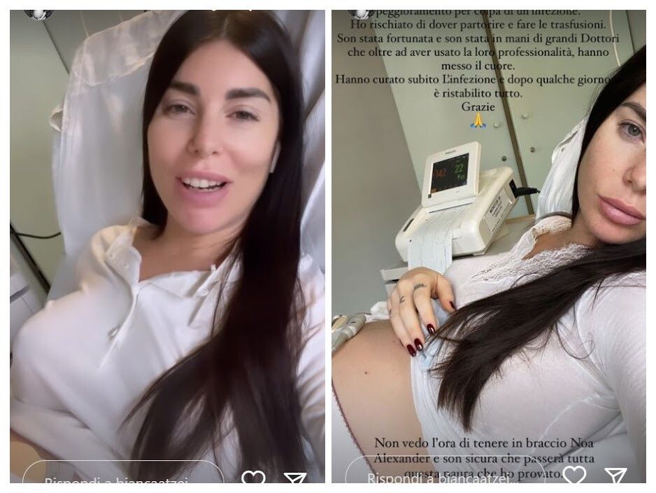 “Ho passato giorni complicati – ha spiegato Bianca Atzei su Instagram - con esiti sempre in peggioramento per colpa di un'iniezione. Ho rischiato di dover partorire e fare le trasfusioni. Sono stata fortuna e sono stata in mani di grandi dottori che, oltre ad aver usato la loro professionalità, hanno messo il cuore. Hanno curato subito l'infezione e, dopo qualche giorno, si è ristabilito tutto. Grazie. Non vedo l'ora di tenere in braccio Noa Alexander e sono sicura che passerà tutta questa paura che ho provato”.