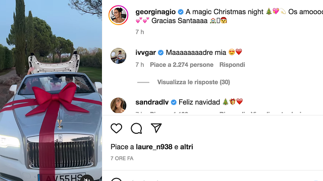 Natale esagerato per Georgina Rodriguez e Cristiano Ronaldo. Ed ecco il regalo da 400mila euro per il campione, collezionatore di auto di lusso. Deluso per il fallimento ai Mondiali, Cr7 può consolarsi così. Come si vede nel video pubblicato da Georgina sui social, ecco il momento in cui la modella mostra in diretta la decappottabile dal prezzo da capogiro. L'auto è stata data al campione impacchettata con un maxi fiocco rosso, lo stesso calciatore ha ringraziato la compagna sui social con un semplice: "Grazie, amore".
