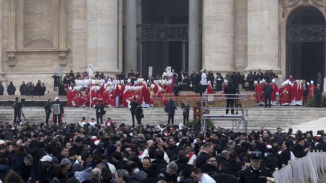 La bara con le spoglie del Papa emerito, Joseph Ratzinger, è stata trasportata dalla Basilica al sagrato di San Pietro. L'arrivo della salma è stato accolto da un lungo applauso. La cassa è stata adagiata davanti all'altare allestito nello spazio di fronte alla Basilica. A presiedere la cerimonia funebre Papa Francesco, mentre la celebrazione è affidata al decano del Collegio cardinalizio, il cardinale Re.