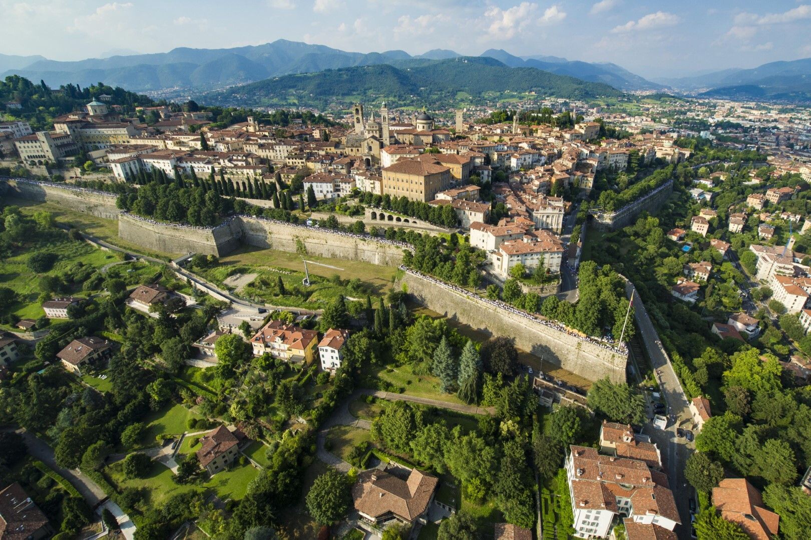 Le mura - L’itinerario più panoramico è quello che si snoda per oltre 5 km lungo la cerchia di mura che circonda la Città Alta, interrotta da quattro porte monumentali. La vista spazia sulla città e i dintorni e, guardando con i cannocchiali che si trovano lungo il tragitto, si può vedere anche Milano. Le mura, Patrimonio Umanità Unesco, furono costruite a partire da1561 dalla Repubblica di Venezia, come baluardo sul confine con lo Stato di Milano. Hanno 100 aperture per bocche da fuoco, 14 baluardi, 2 piattaforme. Un tempo c’erano anche 32 garitte, ma solo una è giunta sino a noi.a che troverai lungo il tragitto potrai vedere Milano!