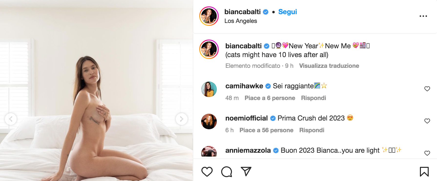 Una nuova vita - Dopo anni dolorosi e tormentati, oggi Bianca Balti è una 38enne risoluta e consapevole. E' ricorsa al congelamento degli ovociti per potersi assicurare la possibilità di diventare mamma ancora una volta, eventualmente anche senza un partner. Ha affrontato poi una la rimozione di ovaie e tube per scongiurare il rischio di un tumore a seguito della diagnosi di BRCA1 e, per lo stesso motivo, è ricorsa alla doppia mastectomia. Il periodo buio ormai è alle spalle: "Ho toccato il fondo e ho detto basta", aveva rivelato in passato a proposito della sua storia fallita con Sal Lahoud ed è pronta a ricominciare. Si è spogliata del peso del passato raccontandolo al mondo intero e ora è pronta a voltare pagina. Anno nuovo, vita nuova.