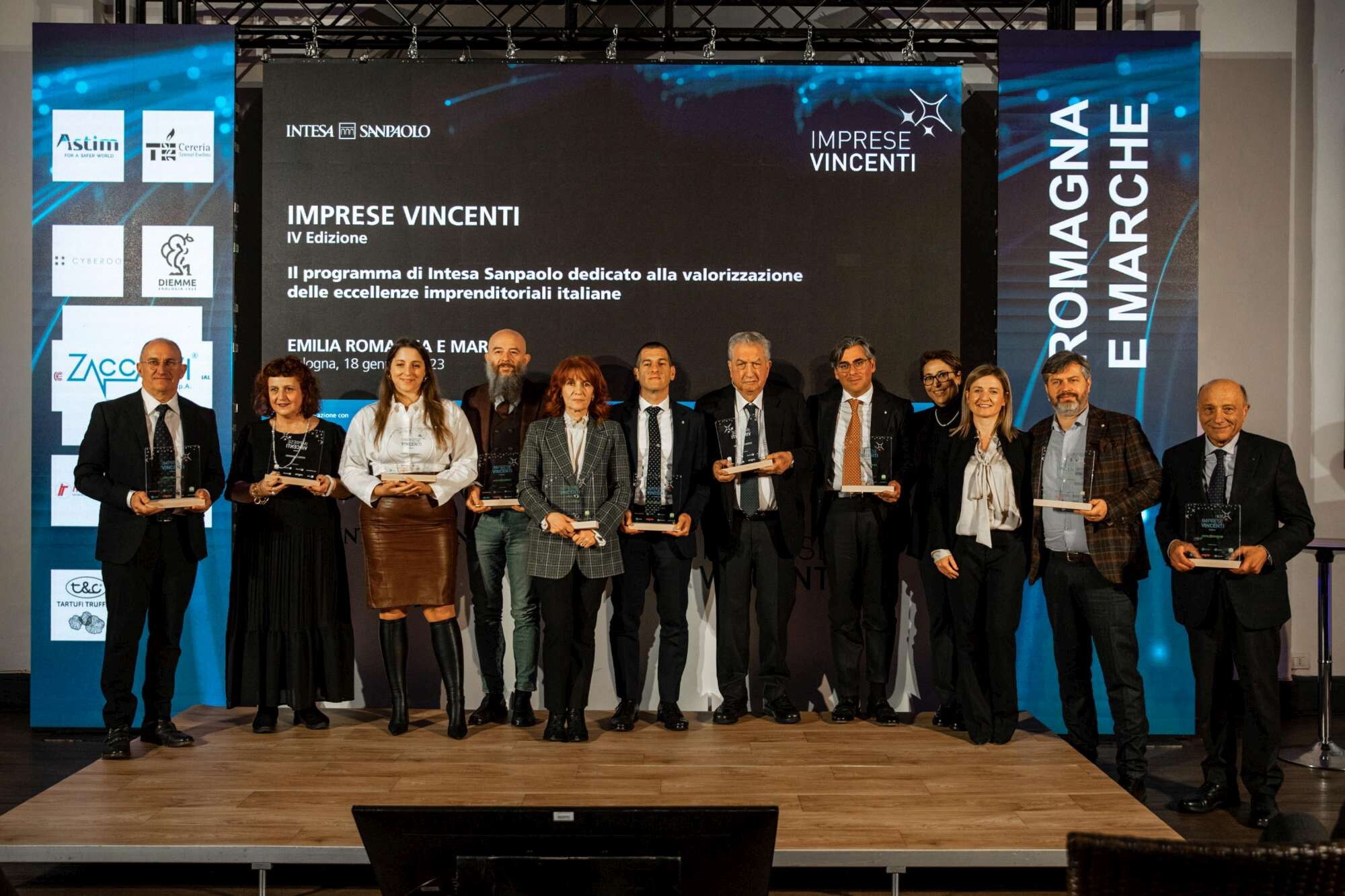 Imprese Vincenti prosegue il suo roadshow e, dopo Milano, Torino, Cuneo, Brescia, Bergamo, Padova, Venezia Mestre e Firenze, ha fatto tappa a Bologna per il nono appuntamento del programma di Intesa Sanpaolo dedicato alla valorizzazione delle migliori PMI italiane. Centrale, nella prima tappa del 2023, il tema dell’innovazione: a Bologna, nello spazio eventi Sympò, altre 10 Imprese Vincenti si sono presentate all’ampia platea di presenti raccontando la propria storia, il proprio percorso di sviluppo e gli investimenti in innovazione che in un contesto economico difficile come l’attuale hanno portato queste aziende a eccellere.