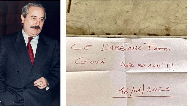 Nel biglietto per Falcone, ucciso dalla mafia nel 1992, non c'è firma, solo una data, il 16 gennaio 2023: giorno, appunto, dell'arresto di Messina Denaro, avvenuto a trent'anni da quelle stragi di Capaci e via D'Amelio che cambiarono il Paese.