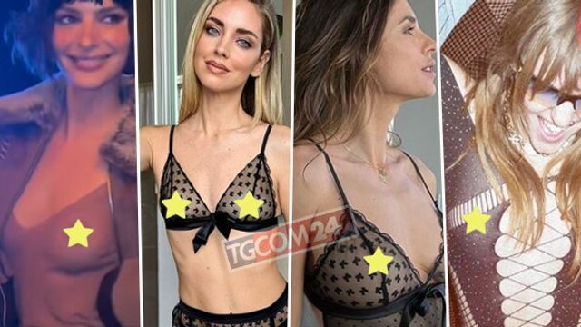 Le foto sexy in intimo non sono mai state un tabu per Chiara Ferragni e ora che si può mostrare più liberamente non si tira indietro. Indossa un completo di biancheria intima velato e tra i ricami si scorge perfettamente il capezzolo. Anche Elisabetta Canalis adotta la stessa tattica e le trasparenze della sua lingerie lasciano visibile il seno prosperoso. Victoria De Angelis, la bassista dei Maneskin, è sempre stata una fiera portabandiera del topless e anche ai suoi concerti ha spesso suonato con i soli pantaloni addosso. Le sue foto sexy su Instagram non si contano e ora può pubblicare in libertà anche le sue mise più osé come il body traforato che non lascia nulla all'immaginazione.