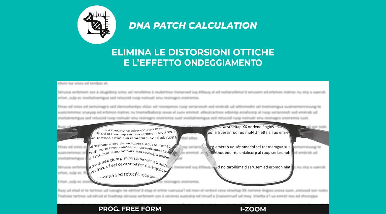 Il segreto sta nella progettazione della lente, che viene generata dall’algoritmo DNA Patch Calculation che analizza e rielabora i parametri visivi grazie a un innovativo modello matematico: in questo modo la lente viene ottimizzata punto per punto grazie a una serie di micro-patch per garantire sempre e in qualsiasi circostanza una visione perfetta e senza distorsioni o sfocature. Disponibile nelle versioni I-Zoom e I-Zoom Check (che offre anche un aumento del campo di visione da vicino con un incremento del volume), la lente viene progettata e personalizzata attraverso l’app I-Check, che scannerizza gli occhi del paziente, ne rileva i movimenti, studia i movimenti del capo, elabora e combina i movimenti oculari e quelli della testa, e fornisce i dati necessari per la totale personalizzazione della lente. Grazie ai dati acquisiti è infatti possibile realizzare la centratura per la visione sia da lontano sia da vicino, personalizzando in un modo finora impossibile la lente anche in base ai parametri facciali, abitudinali e della montatura.