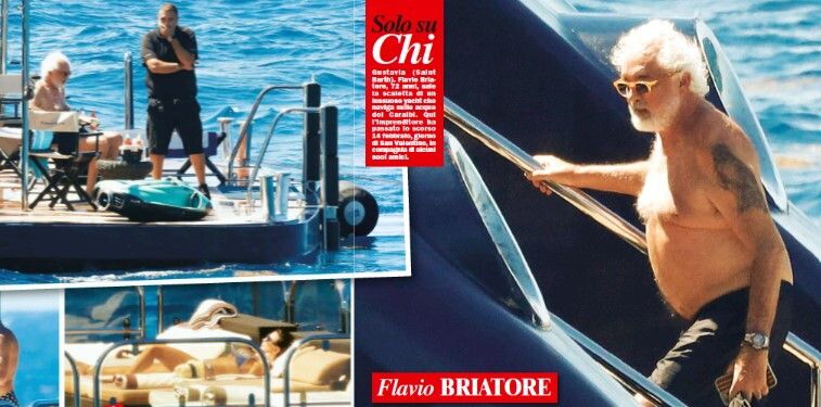 Flavio Briatore è sempre in viaggio. Per vacanza o per lavoro, il manager sale e scende da aerei, elicotteri, treni, auto e anche yacht da sogno. Per la festa degli innamorati ha scelto di non restare a Montecarlo solo soletto – visto che la sua ex Elisabetta Gregoraci aveva preso il volo per Parigi con il nuovo fidanzato Giulio Fratini – e si è imbarcato dall’isola di Saint Barth per una crociera a tutto relax e chiacchiere. In barca Flavio Briatore, 72 anni, si dedica alla tintarella, ai tuffi in mare e non perde di vista i suoi ospiti. Tra loro c’è anche una misteriosa ragazza mora che in bikini conquista subito i flash dei paparazzi: movenze sexy e fisico da sballo che ricorda molta la giovane Gregoraci che ha fatto perdutamente perdere la testa all’imprenditore.