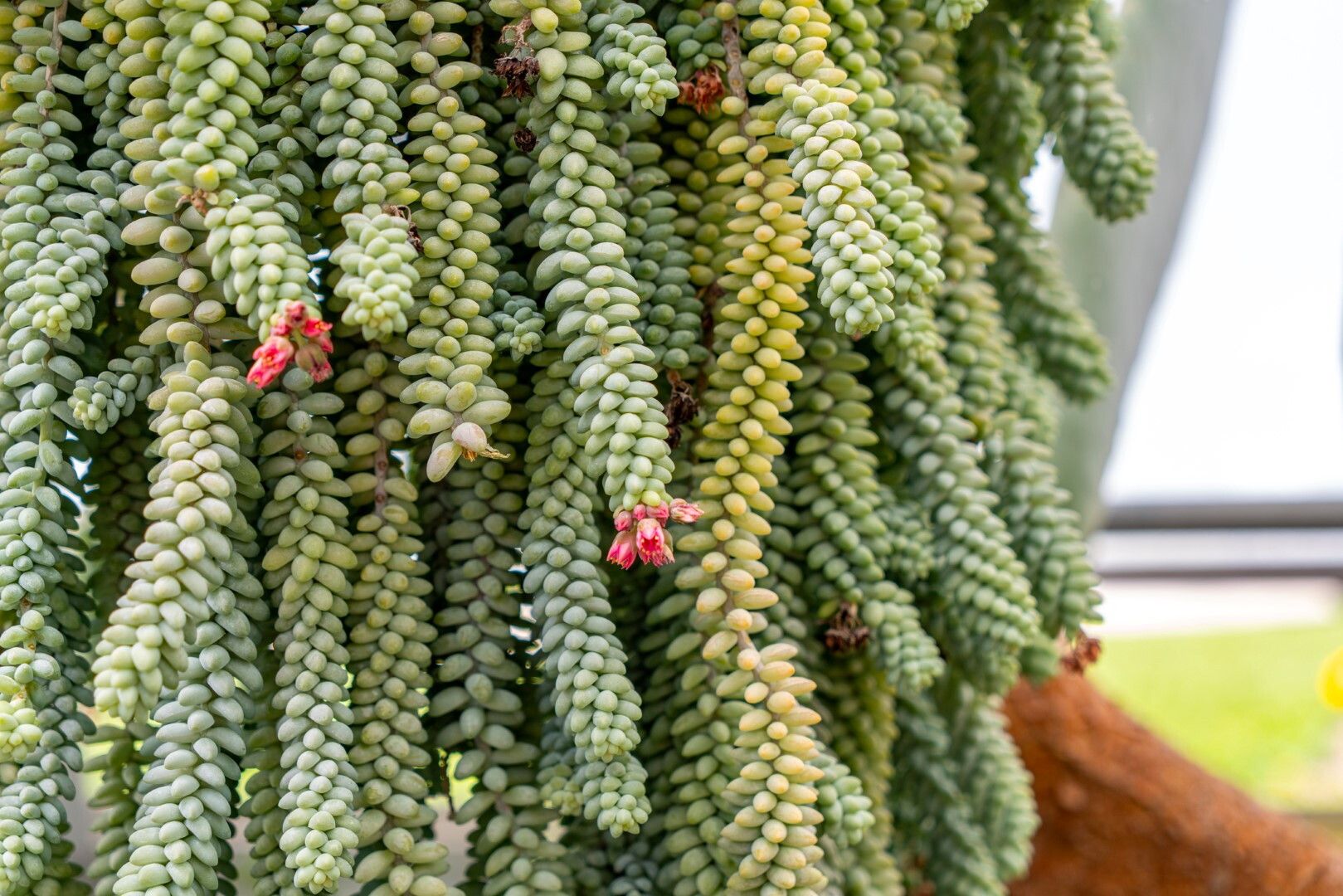 Sedum morganianum – Molto decorativa e allo stesso tempo davvero bizzarra, questa pianta grassa è una delle più decorative tra le succulente da appartamento. Il sedum morganianum è conosciuto anche come “Coda d’asino” per la sua bizzarra forma, è originario dell’Honduras e del sud del Messico, ed è caratterizzata da steli coperti fittamente da foglie rotondeggianti, come grappoli lunghi anche una sessantina di centimetri