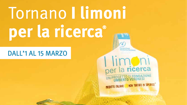 Tutto pronto per la settima edizione de "I limoni per la ricerca®", il progetto realizzato grazie alla collaborazione tra Fondazione Umberto Veronesi e Citrus l’Orto Italiano che finanzia il lavoro di medici e ricercatori che hanno deciso di dedicare la propria vita alla ricerca scientifica d’eccellenza. Dal 1° al 15 marzo i limoni siciliani varietà primofiore, chiamati così perché sono ottenuti dalla prima fioritura delle piante, saranno venduti in speciali retine da 500 grammi distribuite in tutta Italia nei supermercati, ipermercati e discount che aderiscono all’iniziativa.